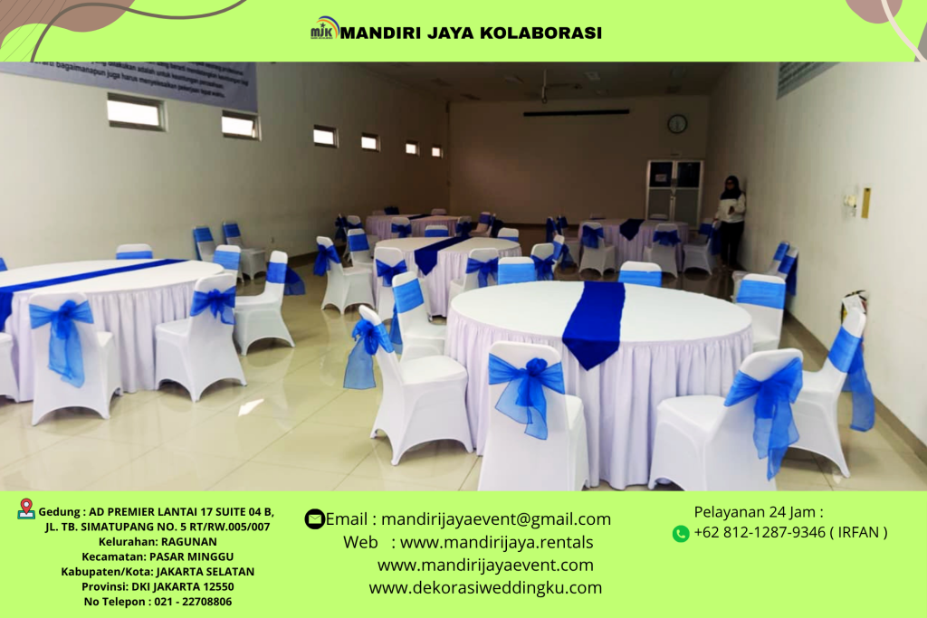 Pastinya, menggelar acara spesial di wilayah Jakarta Utara membutuhkan persiapan visual panggung dan ruangan yang estetis. Kamu wajib memilih CV Mandiri Jaya Kolaborasi jasa penyewaan alat pesta berpengalaman untuk mewujudkan konsep pestamu.